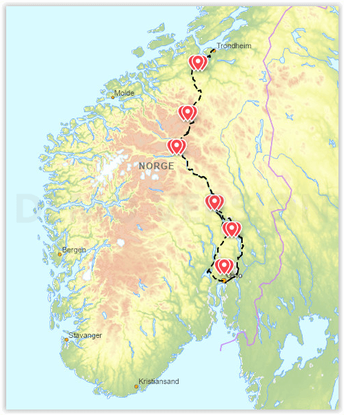 Oslo - Mjøsa - Gudbrandsdal - Dovrefjell-vlakten -Trondheim