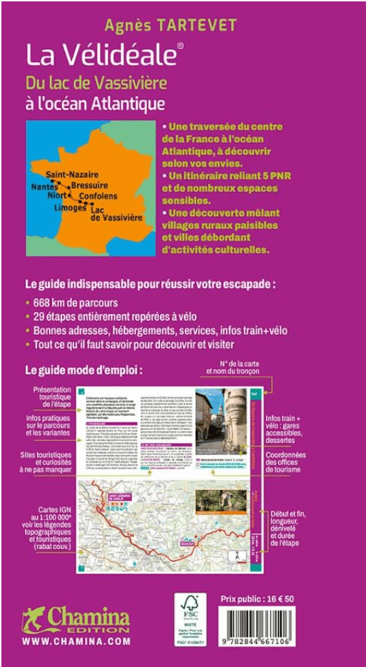 Productomschrijving: Découvrez La Vélidéale, un itinéraire d’exception qui invite à l’exploration des plus beaux paysages et patrimoines du centre de la France jusqu’à l’Atlantique. Entre le Lac de Vassivière et Saint-Nazaire, cette aventure cyclable traverse 5 Parcs naturels régionaux, des rivières sauvages, des marais classés, et des villages pittoresques, offrant une immersion unique au cœur de la biodiversité.