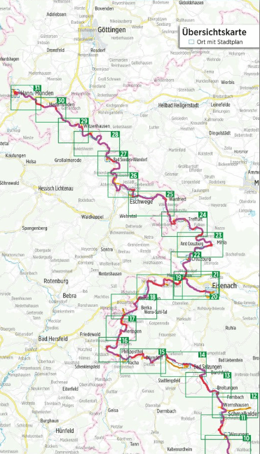Der Werratal-Radweg führt Sie auf der über 300 Kilometer langen Strecke durch die facettenreiche Landschaft des Werratals bis zur Mündung in der Drei-Flüsse-Stadt Hann. Münden, wo sich die Werra mit der Fulda zur Weser vereinigt. Vom Rennsteig im malerischen Thüringer Wald - hier entspringt die Werra aus zwei Quellen - geht es im Tal zwischen Rhön und Thüringer Wald entlang historischer Städte und Dörfer.