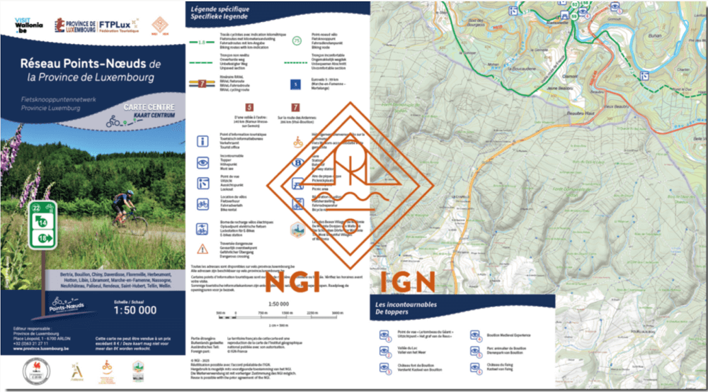 Fietsknooppuntenkaart Provincie Luxemburg Centraal - NGI