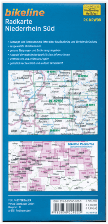 Productomschrijving: Niederrhein is Duits voor de benedenloop van de Rijn vanaf Bonn tot aan de grens bij Emmerik. In het geval van deze nieuwe fietskaart van Bikeline, gaat het over de Zuid kant van deze regio.
