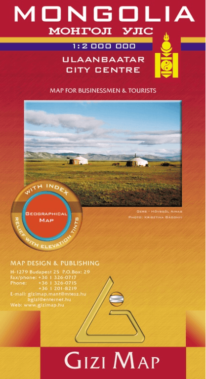 Bevat een index van plaatsnamen en een inlegvel van de stad Ulaanbaatar.
