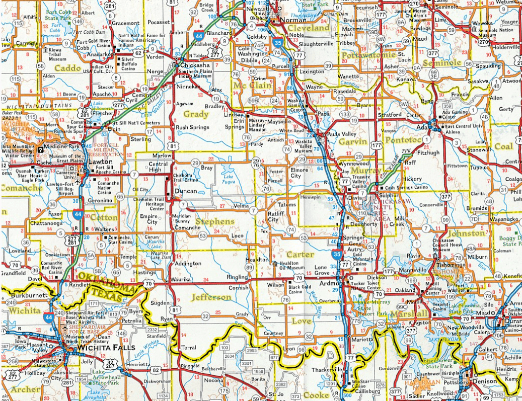 The United States Texas and Oklahoma Adventure Map will guide you through the vast state of Texas and plains and hills of Oklahoma. For a short time in the 1800's Texas was an independent country which is not surprising since it is larger than France, Spain, or Germany. The map stretches from the Gulf Coast of Texas with white sand beaches, through the famous Texas Hill Country surrounding Austin and the desert landscape of Big Bend along the Rio Grande to the Red River valley that divides Texas from Oklahoma. This map includes the cities of Houston, San Antonio, Austin, Dallas, Fort Worth, El Paso, and Oklahoma City. There is simply no better map for exploring Texas and Oklahoma.