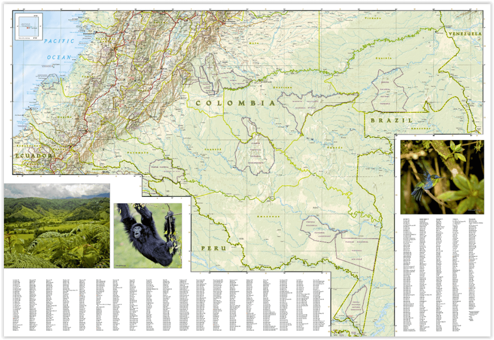 Wegenkaart Adventure map Colombia - Nat Geo Productomschrijving: Let National Geographic's Colombia Adventure Map guide you as you explore the unique biodiversity, rich history and vibrant c...
