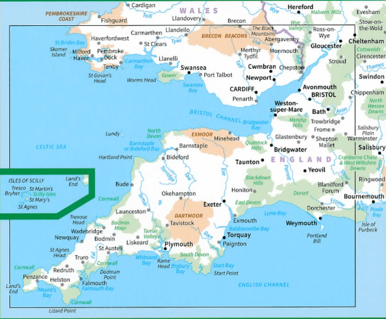 OS Road 7 covers: the south-west England plus south Wales, Devon & Cornwall.