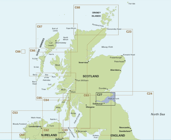 De (Engelse) kaarten uit de Imray C-serie bestrijken vaargebieden in Noordwest-Europa. Deze serie vormt het meest uitgebreide assortiment zeilkaarten dat verkrijgbaar is. Geschikt voor het plannen van routes en grotere kaarten voor het navigeren in kustwateren, zelfs dicht bij de kust. De kaart bevat de nieuwste officiële UKHO Digital-gegevens, gecombineerd met aanvullende informatie uit het netwerk van Imray, waardoor deze ideaal is voor kleine vaartuigen. De kaart is volledig herzien.