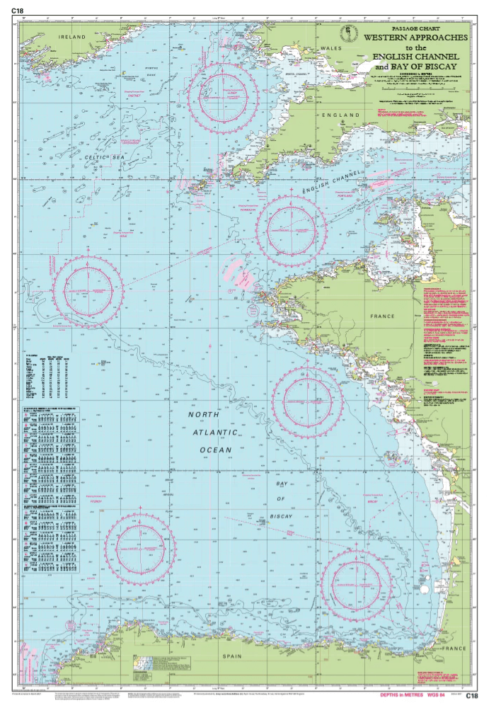 Passage kaart Toegangswegen tot Engelse Kanaal & Golf van Biskaje