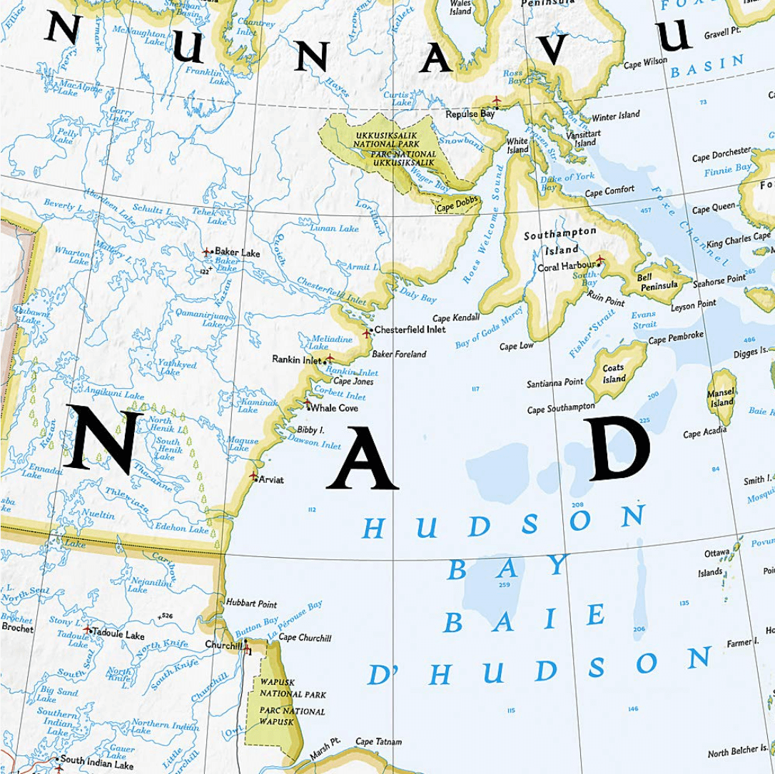 Productomschrijving: National Geographic's map of Canada is one of the most authoritative maps of "The Great White North." This Classic style wall map features a bright color palette with blue oceans and the country's terrain detailed in stunning shaded relief that has been a hallmark of National Geographic maps for over 75 years. Thousands of place names, accurate political boundaries, national parks, and major infrastructure networks such as roads, canals, ferry routes, and railroads are detailed. Coastal bathymetry is shown with depth curves and soundings, and the boundaries of the winter extent of sea ice are marked as well.