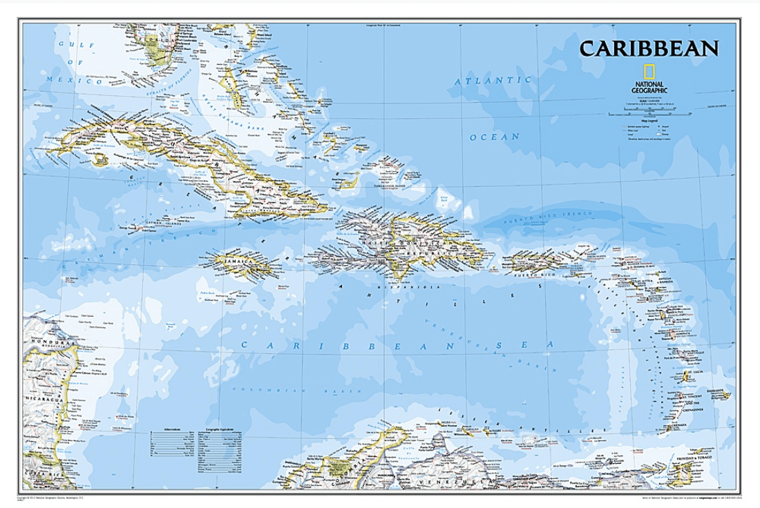 Wandkaart Caribbean 91 x 61 cm - Nat Geo Productomschrijving: One of the most authoritative maps for the islands of the Caribbean Sea. It shows the entire region in great detail, with covera...