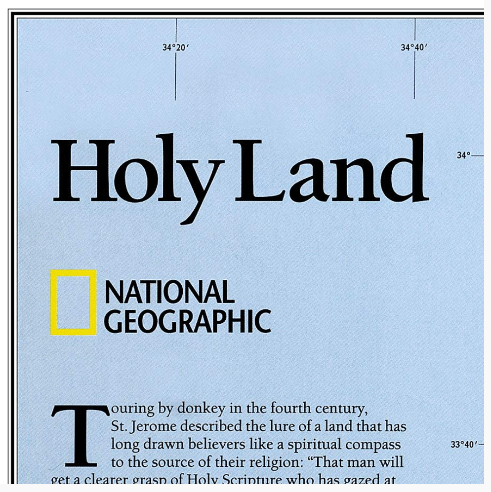 Productomschrijving: National Geographic's Holy Land wall map provides a fascinating in-depth look at the faiths, peoples, and politics that have shaped this historic region. This detailed political map is overlayed with facts about significant religious sites. Information on Judaism, Christianity, and Islam, as well as historical periods from the Stone and Bronze ages to the Islamic period through 1917 make this as much an educational tool as an attractive work of cartographic art.