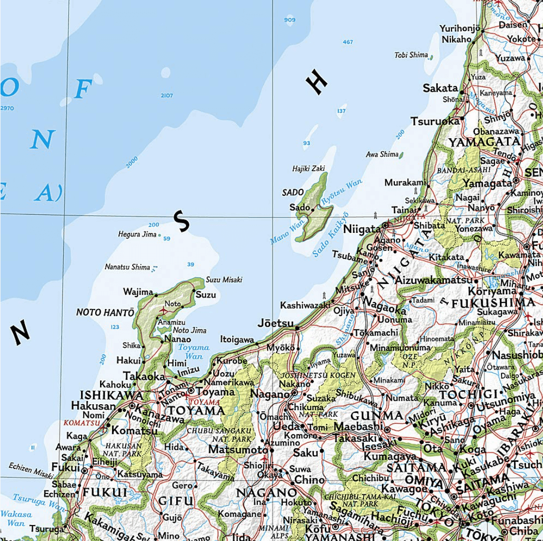 Productomschrijving: The signature Classic style map of Japan features a bright color palette with blue oceans and the country's terrain detailed in stunning shaded relief that has been a hallmark of National Geographic wall maps for over 75 years. The map includes thousands of place names, accurate boundaries, national parks, and major infrastructure networks such as roads, highways, airports, and railroads. Coastal bathymetry is shown with depth curves and soundings. Inset maps provide detail of Japan's Southern Outer Islands and the Ryukyu Islands.