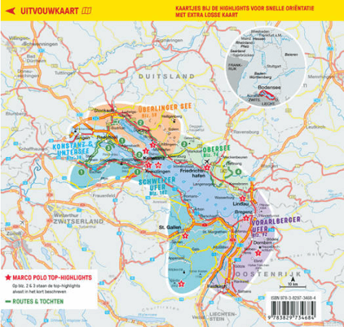 Productomschrijving: Marco Polo reisgids Bodensee! Handig pocket formaat, boordevol informatie, met uitneembare kaart achter in het boek en extra bladzijden atlas. Met 'insider tips' om het gebied écht te ontdekken, de beste bezienswaardigheden in één oogopslag, up-to-date informatie in overzichtelijke hoofdstukken: sightseeing, eten & drinken, winkelen, uitgaan, verblijf, routes & tochten, voor kinderen, feesten, festivals & evenementen, internet tips, praktische info van a tot z, een taalgidsje, plattegronden en straatnamenregister.