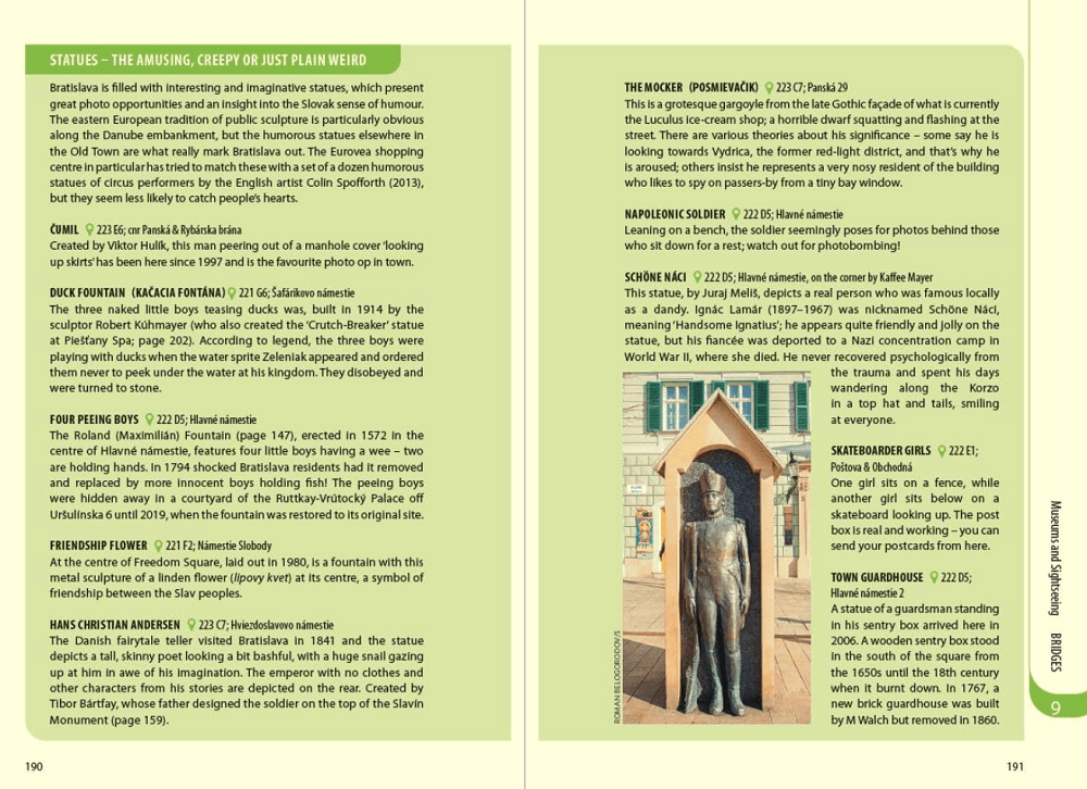 City walks are also included, focusing on the main sights and beyond, as is sightseeing from castles and palaces to museums, galleries, churches, gardens and parks. Beyond the city itself there are sections on Devín, Cervený Kamen, Ancient Gerulata, Rusovce, the Small Carpathian Wine Route, Senec, Pieštany Spa, Trnava and Košice (in eastern Slovakia). There are also useful reference sections on language (pronunciation and words and phrases) and sources of further information.