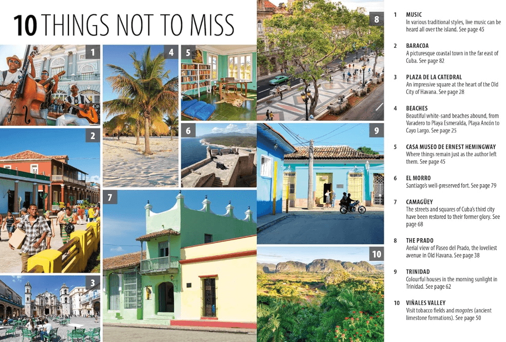 - Overview maps - handy maps on the inside cover flaps showing Cuba and around
