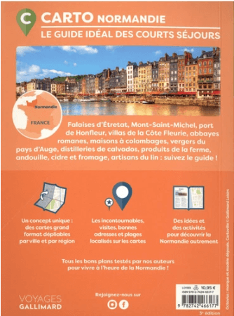 Productomschrijving: Falaises d'Etretat, Mont-Saint-Michel, port de Honfleur, villas de la Côte Fleurie, abbayes romanes, maisons à colombages, vergers du pays d'Auge, distilleries de calvados, produits de la ferme, andouille, cidre et fromage, artisans du lin : suivez le guide ! Un concept unique: des cartes grand format dépliables par ville et par région; Les incontournables, visites, bonnes adresses et plages localisés sur les cartes; Des randonnées et des activités pour découvrir la Normandie autrement.