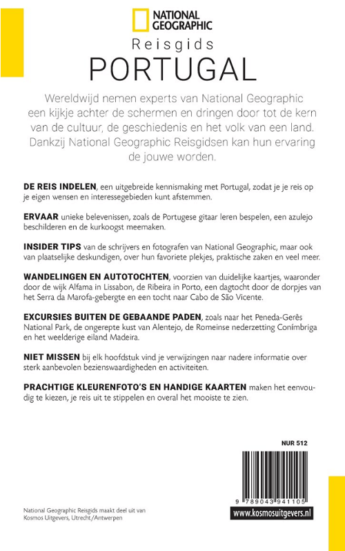 Reisgids Portugal - Kosmos Productomschrijving: National Geographic Reisgids Portugal is een exclusieve gids met sublieme fotografie die u meeneemt naar de bekende en minder bekende beziensw...