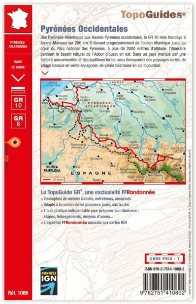 Franse omschrijving: Pays Basque et Béarn, d'Hendaye à Arrens, par le pic du Midi d'Ossau. Plus de 20 jours de randonnée.