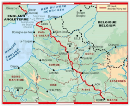 Franse omschrijving: De l'abbaye de Canterbury jusqu’à la cathédrale gothique de Reims, cité des Rois. Le randonneur pourra suivre les pas de l'archevêque Sigéric. Itinérance de 20 jours au travers différents paysages allant du littoral du Nord, aux champs et vignes présents jusqu'au pays de Reims. Des sites archéologiques et des édifices religieux sont présents en nombre le long de la Via Francigena.