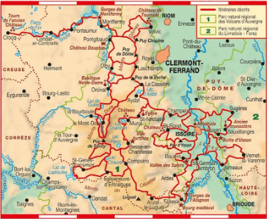 Productomschrijving: Een 6-daagse tocht door de Chaîne des Puys langs de GR® 441 naar Puy de Dôme en Puy Chopine. De GR® 30 lus neemt alle meren in het natuurpark mee. De GR® de Pays du Val d'Allier biedt 5 lussen van 3 tot 5 dagen: Tour en Pays des Couzes, Tour au Pays de la reine Margot, Des rives de l'Allier aux portes du Livradois, Aux marches du Cézallier, Tour en Dauphiné d'Auvergne.