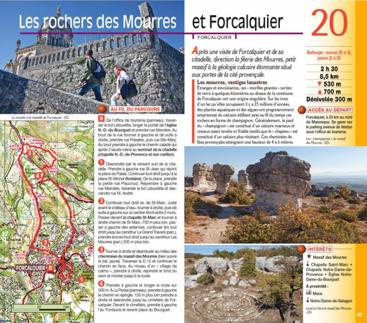 Beroemd om zijn dorpjes (Gordes, Lacoste, Bonnieux), natuurlijke oker (Rustrel, Roussillon), abdijen (Senanque, St. Hilaire Ménerbes, St. Eusebius in Saignon), de zon fruit (meloenen uit Cavaillon, fruit confits van Apt), de Luberon is een aangename speeltuin voor wandelaars. De 20 wandelingen van de gids zijn praktisch in alle seizoenen en combineren architecturaal en natuurlijk erfgoed op een grondgebied dat wordt beschermd door het Regionaal Natuurpark.