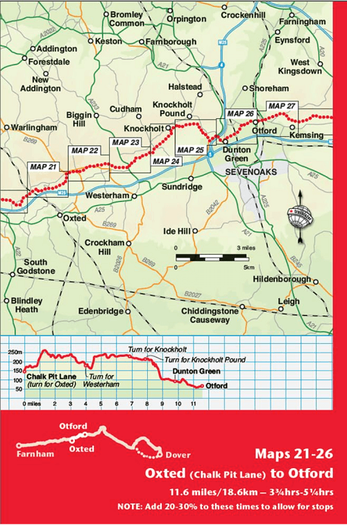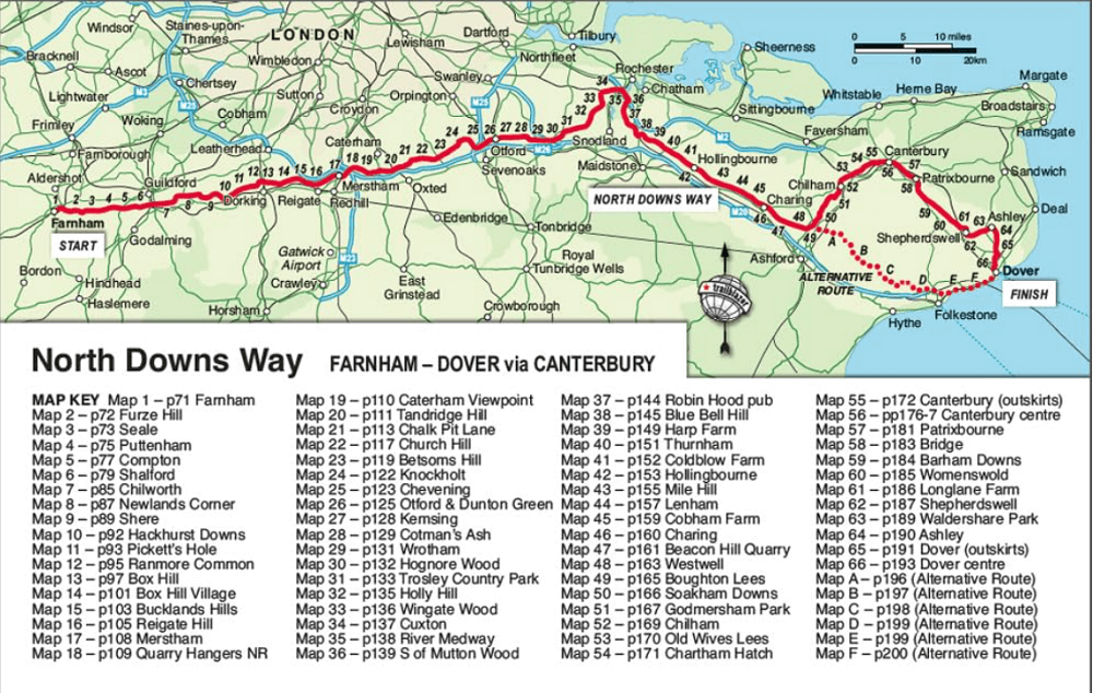 Productomschrijving: The North Downs Way, from Farnham to Dover is a 131-mile (211km) National Trail.
