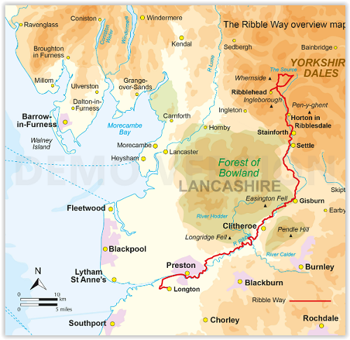 Preston, Clitheroe, Gisburn, Sette, Stainforth, Horton in Ribblesdale.