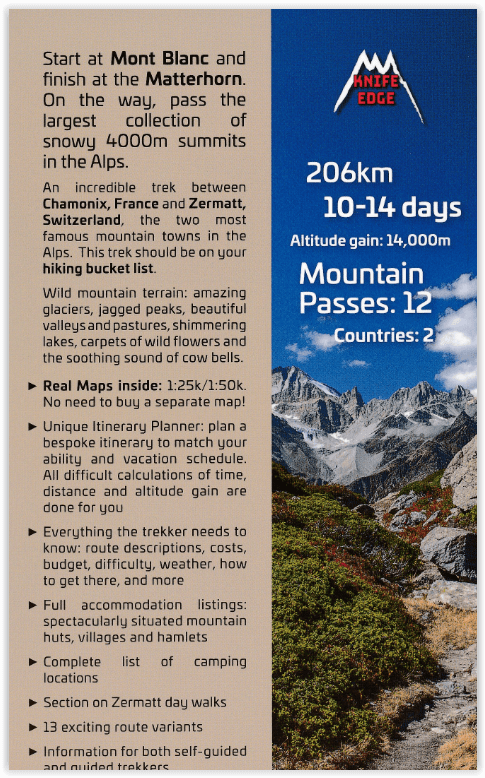 Engelse omschrijving: Complete guidebook for planning and trekking the Walker's Haute Route