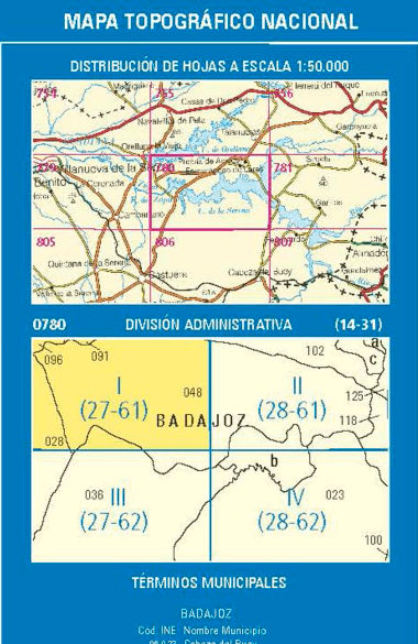 - Wandelkaart 000780.4 Peñalobar, Badajoz, Extremadura, Spanje