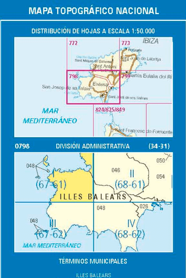 Wandelkaarten Sant Antoni de Portmany (gemeente) Ibiza, Balearen Spanje en Ibiza (provincie) Balearen, Spanje van Centro Nacional de Informacion Geografica. Ideaal voor tochten in Spanje.