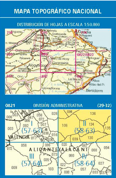 - Wandelkaart 000821.3 Alcoi, Alicante, Valencia Spanje - CNIG