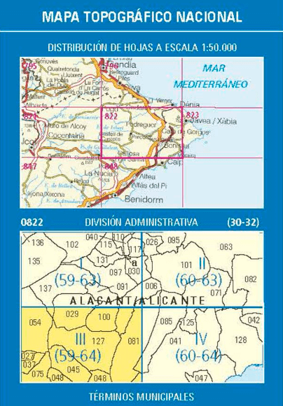 - Wandelkaart 000822.4 Benissa, Alicante, Valencia Spanje - CNIG