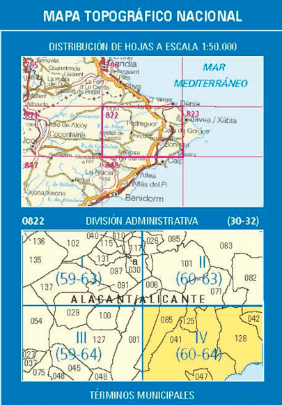 - Wandelkaart 000822.4 Benissa, Alicante, Valencia Spanje - CNIG