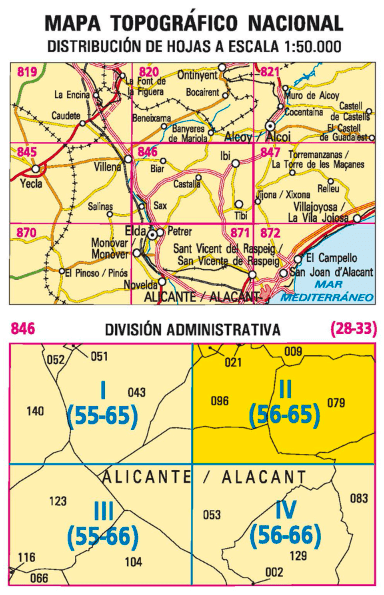 - Wandelkaart 000846.1 Biar, Alicante, Valencia Spanje - CNIG
