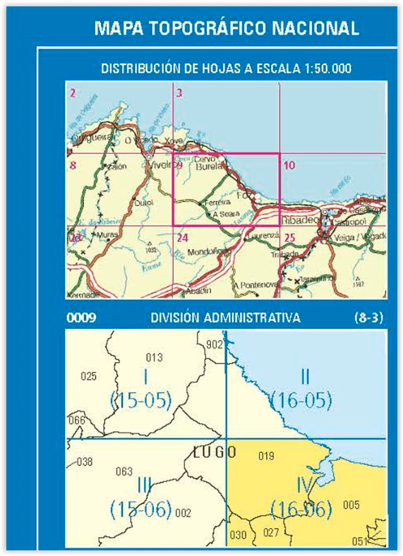 Wandelkaarten Lugo (Provincie) Spanje en Galicië, Spanje van Centro Nacional de Informacion Geografica. Ideaal voor tochten in Spanje.