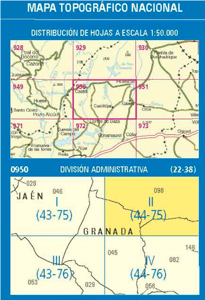 Wandelkaarten Huéscar (gemeente) Granada, Andalusië Spanje en Granada (Provincie) Andalusië Spanje van Centro Nacional de Informacion Geografica. Ideaal voor tochten in Spanje.