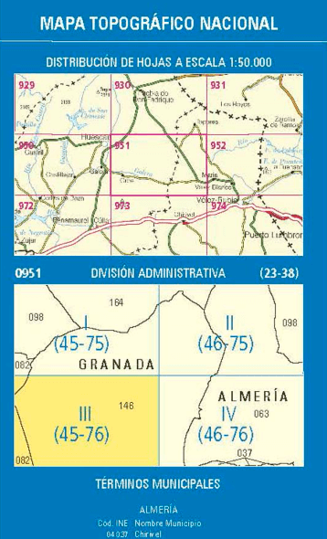 Wandelkaarten Orce (gemeente) Granada, Andalusië Spanje en Granada (Provincie) Andalusië Spanje van Centro Nacional de Informacion Geografica. Ideaal voor tochten in Spanje.