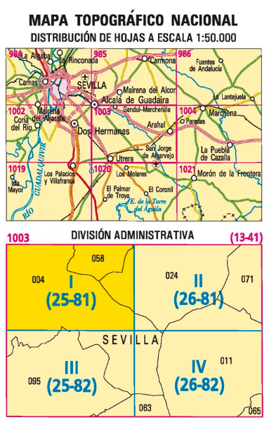 Wandelkaarten Gandul-Marchenilla (gemeente) Sevilla, Andalusië Spanje en Sevilla (provincie) Andalusië Spanje van Centro Nacional de Informacion Geografica. Ideaal voor tochten in Spanje.