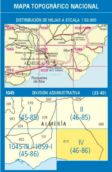 Wandelkaarten El Alquián (gemeente) Almeria, Andalusië Spanje en Almeria (Provincie) Andalusië Spanje van Centro Nacional de Informacion Geografica. Ideaal voor tochten in Spanje.