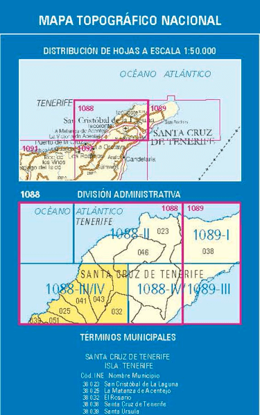 Wandelkaarten Tacoronte (eiland) TENERIFE, Canarische eilanden Spanje en Canarische Eilanden, Spanje van Centro Nacional de Informacion Geografica. Ideaal voor tochten in Spanje.