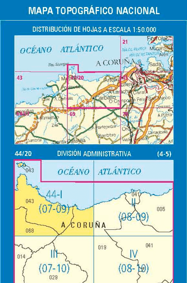 - Wandelkaart 0044.3 Carballo, A Coruna Galicië - CNIG