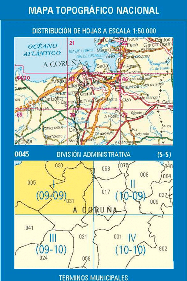 - Wandelkaart 0045.1 Arteixo, A Coruna Galicië - CNIG