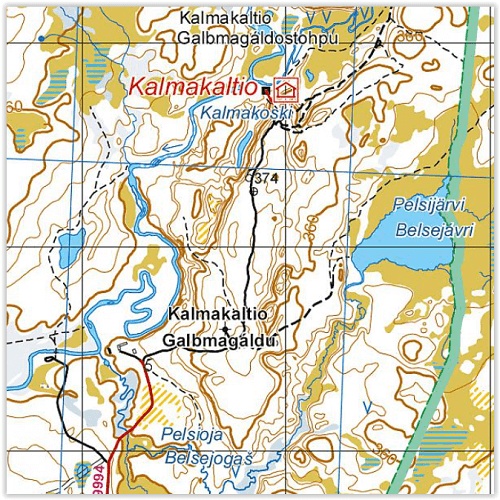 TOPO Wandelkaart Nunnanen Kalmakaltio Suukisjoki