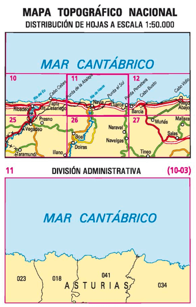 Wandelkaarten Luarca (gemeente) Asturië, Asturië Spanje en Asturië (provincie) Spanje van Centro Nacional de Informacion Geografica. Ideaal voor tochten in Spanje.