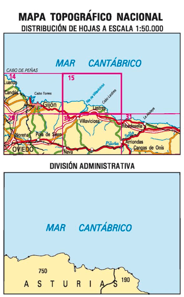 Wandelkaarten Lastres (gemeente) Asturië, Asturië Spanje en Asturië (provincie) Spanje van Centro Nacional de Informacion Geografica. Ideaal voor tochten in Spanje.