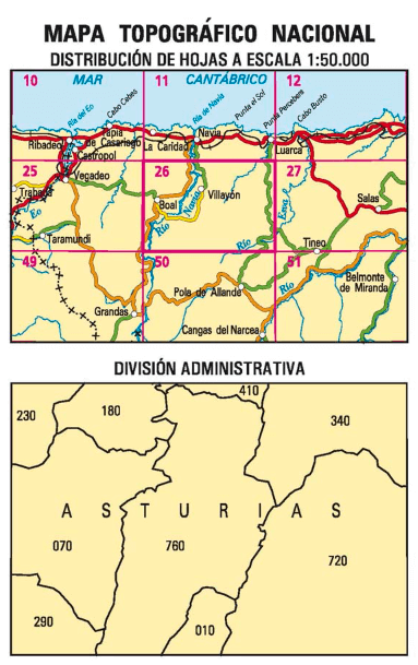Wandelkaarten Boal (gemeente) Asturië, Asturië Spanje en Asturië (provincie) Spanje van Centro Nacional de Informacion Geografica. Ideaal voor tochten in Spanje.