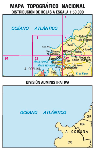 Wandelkaarten San Salvador de Serantes (gemeente) A Coruna, Galicië SPanje en A Coruña (provincie) Galicië Spanje van Centro Nacional de Informacion Geografica. Ideaal voor tochten in Spanje.