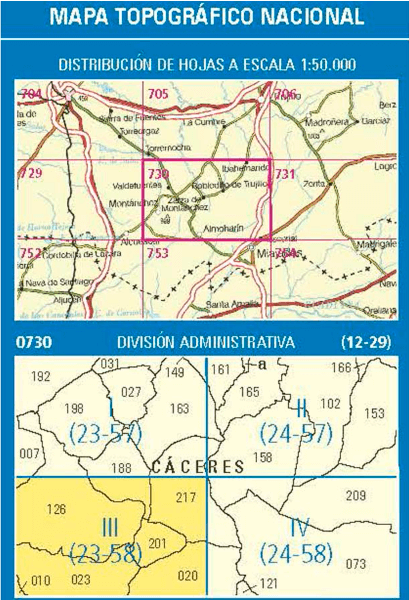 Wandelkaarten Montánches (gemeente) Caceres, Extremadura Spanje en Cáceres (provincie) Extremadura, Spanje van Centro Nacional de Informacion Geografica. Ideaal voor tochten in Spanje.