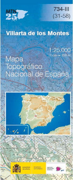 Wandelkaart Villarta de los Montes, Badajoz, Extremadura Productomschrijving: De Topografische Wandelkaarten, met reeks MTN25 van CNIG! Omvat: Villarta de los Montes, Gemeente in de prov...