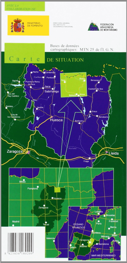 Deze kaart omvat het Nationale park van: Ordesa y Monte Perdido NP, Huesca Aragon Spanje.
