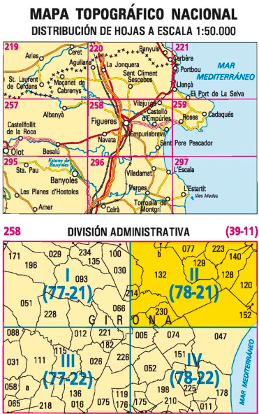 - Wandelkaart 0258.1 Figueres, Girona, Catalonië - CNIG
